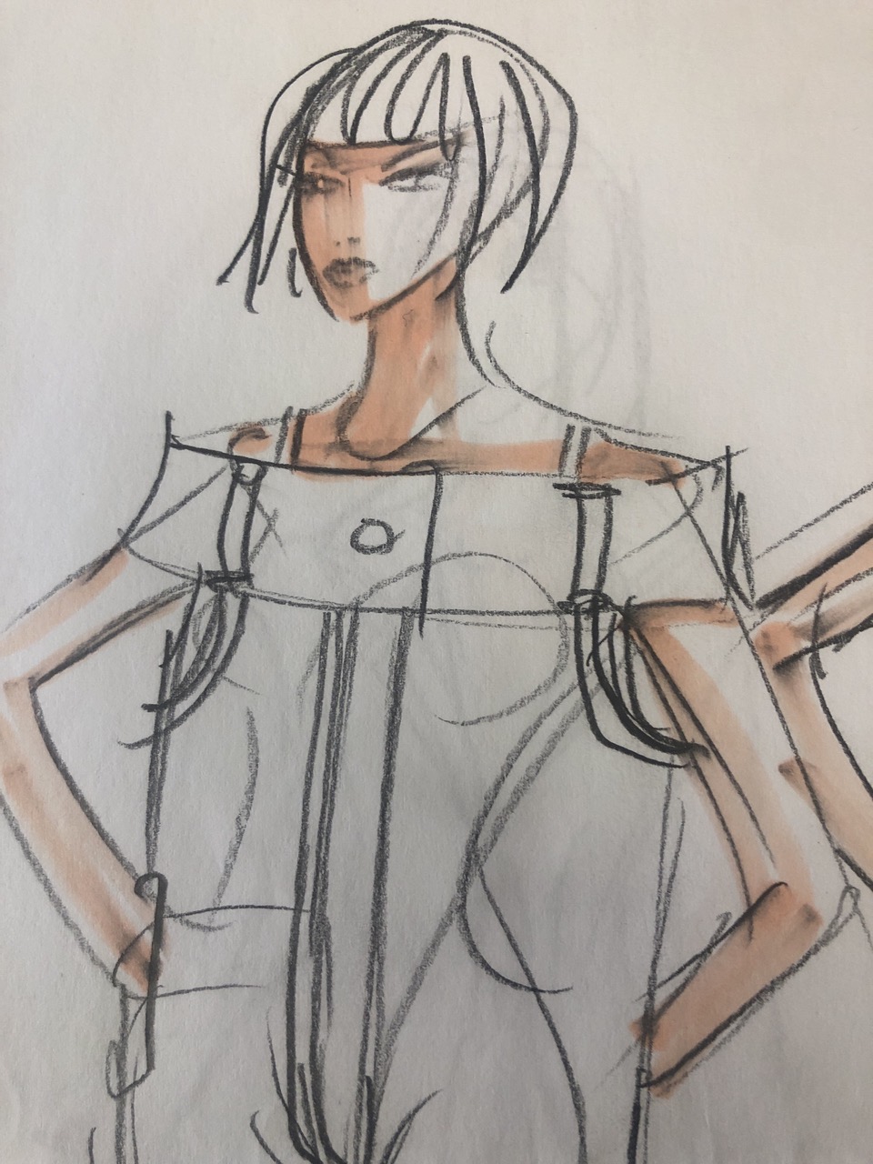 Meine Entwürfe entstehen aus der Transformation abstrakter Formen in tragbare Kleidungsstücke. Die Blüte einer Tulpe, eine Kastenform, eine Flasche oder ein Kelch – all diese Elemente dienen mir als Ausgangspunkt für raffinierte Schnitte.